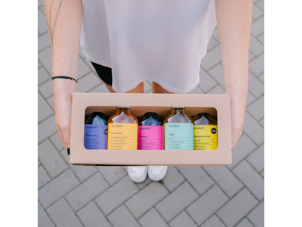 Pět malých sirupů v letním mixu chutí – od svěží máty a citronu s tymiánem až po šťavnatou malinu, rybíz nebo citrusový mix.