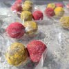 Balíček obsahuje 2 ks pralinek. Složení hmoty pralinek je stejné, ale každá je obalená v jiném ovocném prášku z lyofilizovaného ovoce.