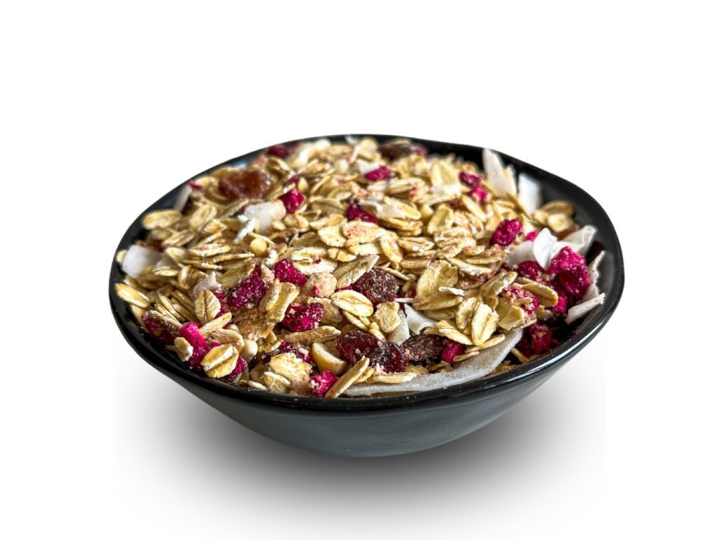 Představujeme naše nepečení müsli! V každém 1 kg müsli najdete nejméně 50 g našeho lyofilizovaného ovoce.