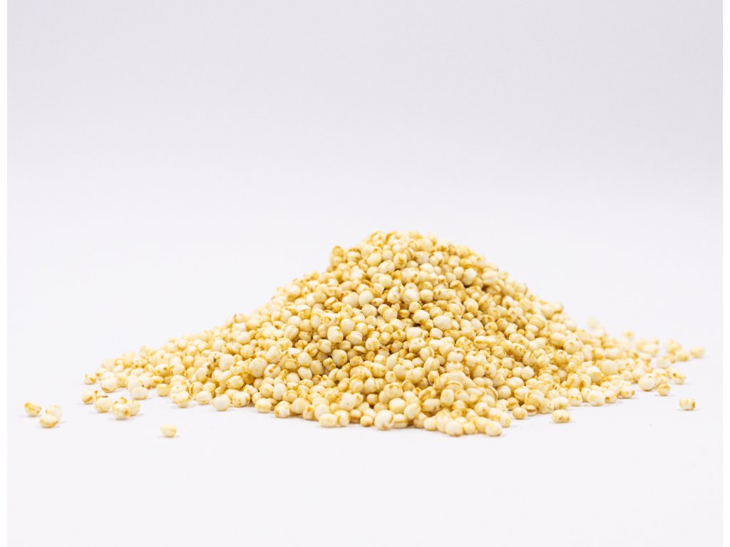 Lehká a křupavá quinoa v BIO kvalitě, připravená šetrným pufováním čistě rostlinná surovina vhodná do kaší, jogurtů i domácího pečení