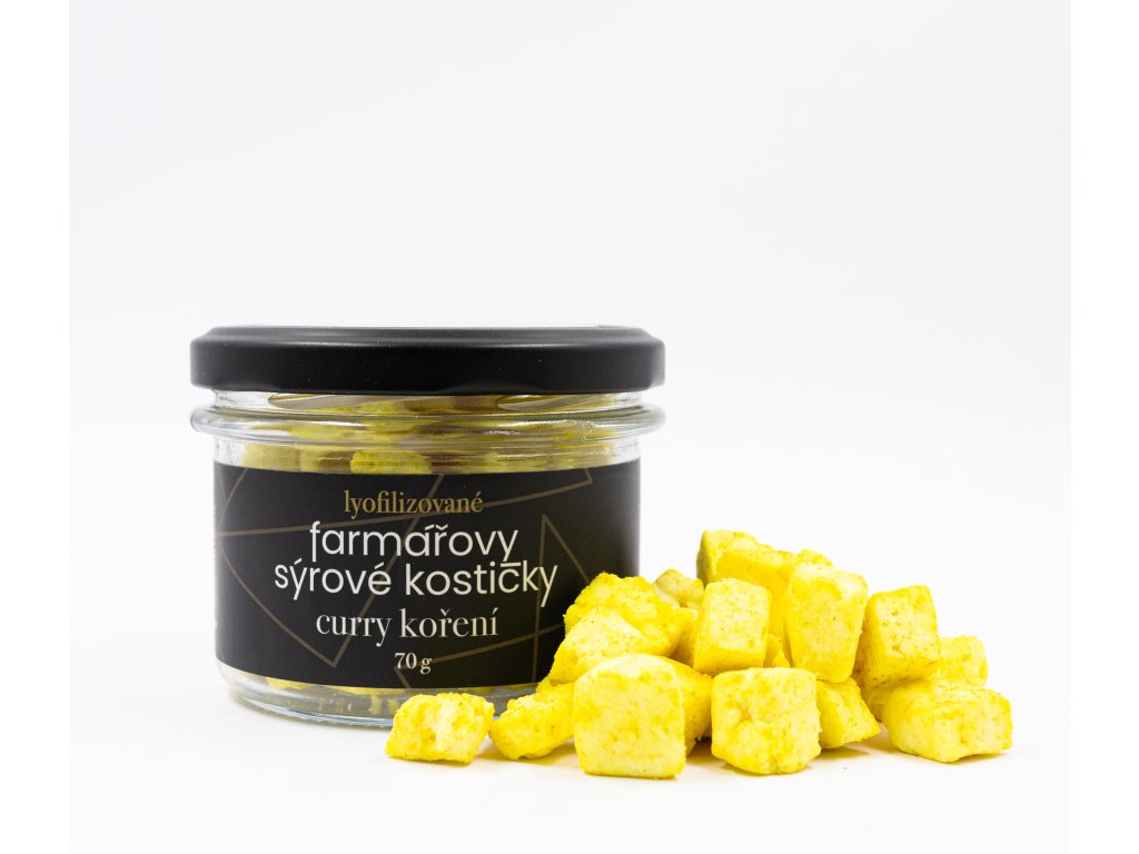 Poctivý přírodní sýr s orientálním nádechem koření lyofilizované sýrové kostičky pro rychlou slanou svačinu nebo zpestření jídel