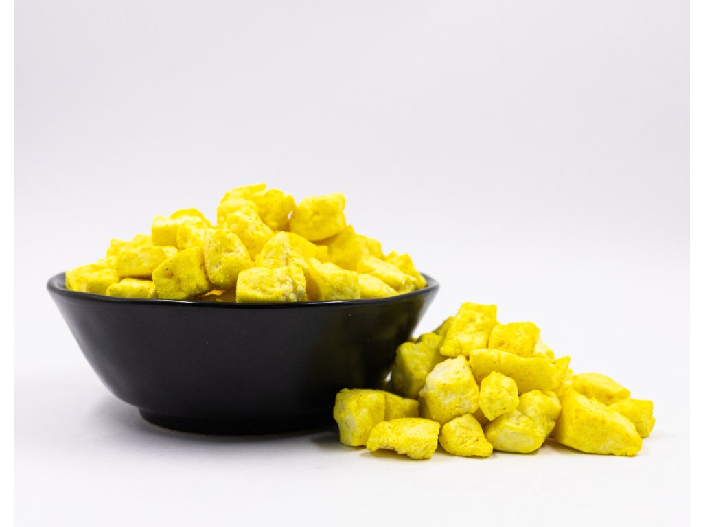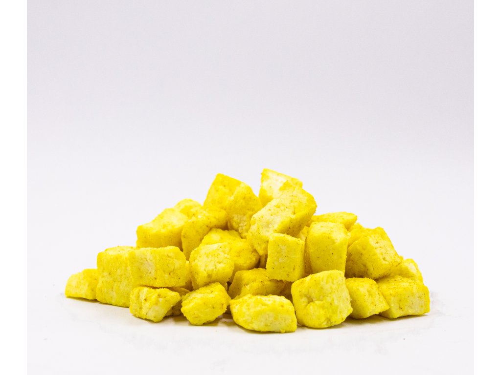 Poctivý přírodní sýr s orientálním nádechem koření lyofilizované sýrové kostičky pro rychlou slanou svačinu nebo zpestření jídel