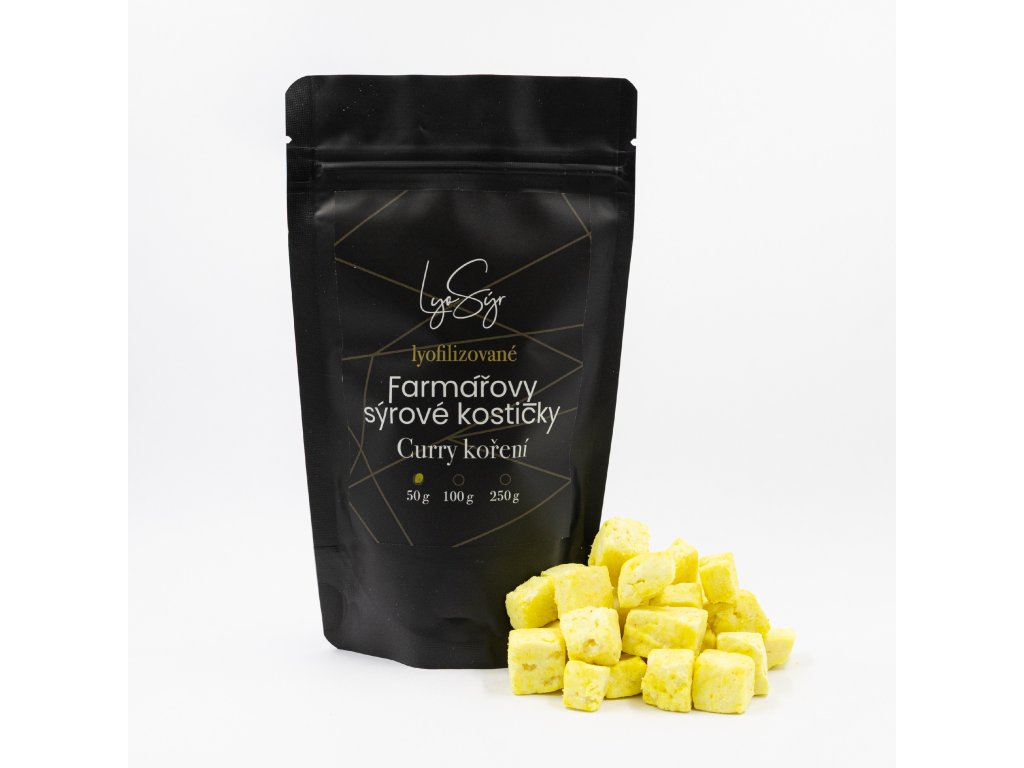 Poctivý přírodní sýr s orientálním nádechem koření lyofilizované sýrové kostičky pro rychlou slanou svačinu nebo zpestření jídel