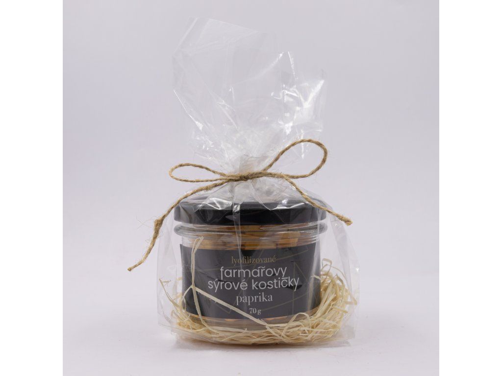 Křupavé sýrové kostičky s paprikou ze skutečného českého sýra, výživná bezlepková svačina ideální na cesty, do práce i na výlet