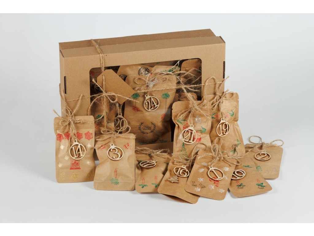 Sáčky se budou moct použít opakovaně, pokud je nijak nepoškodíte (třeba příští rok). - Dárkové balení - Kalendář bude zabalen do dárkové krabice a převázána jutovým provázkem. Balíček můžete tedy rovnou předat, jako dárek.