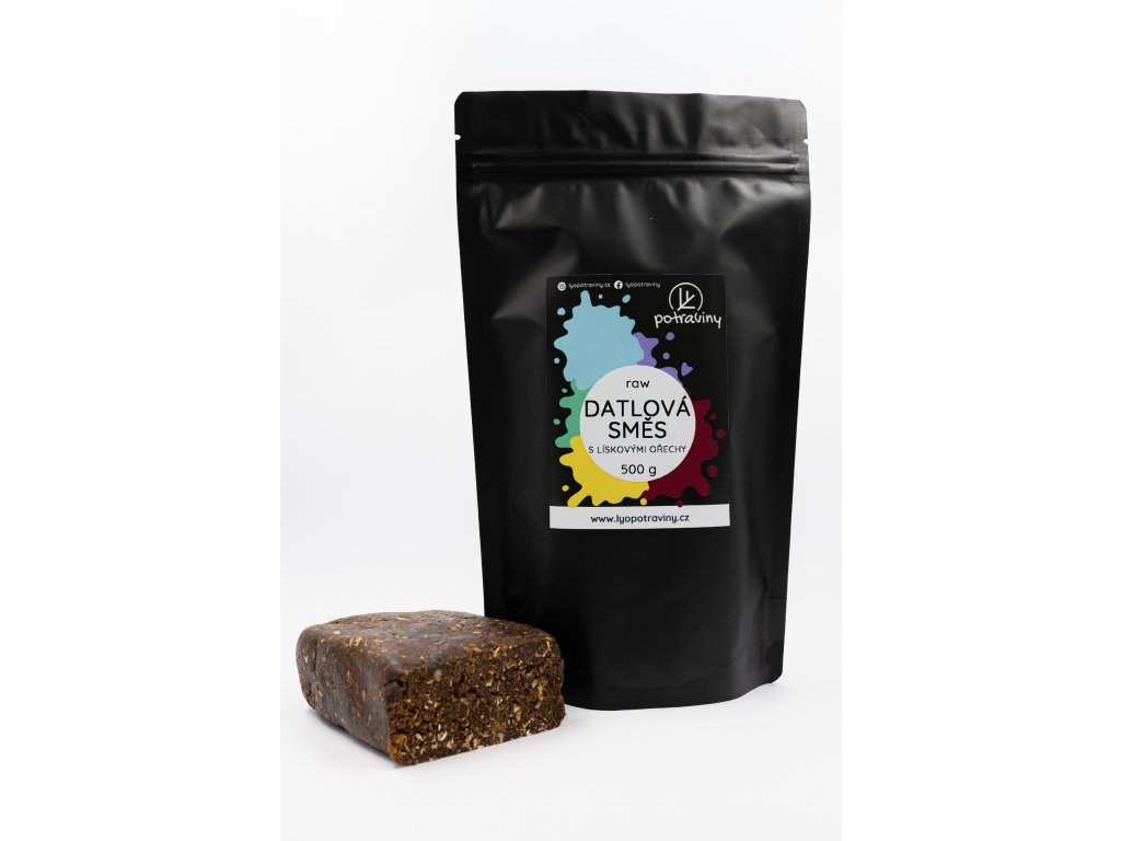 Tuto datlovou směs si vyrábíme sami jako chuťově výraznější variantu s plnou oříškovou linkou. Základ tvoří datlová pasta a BIO ovesné vločky, doplněné o čekankový sirup, hořkou veganskou čokoládu a BIO lískové ořechy.